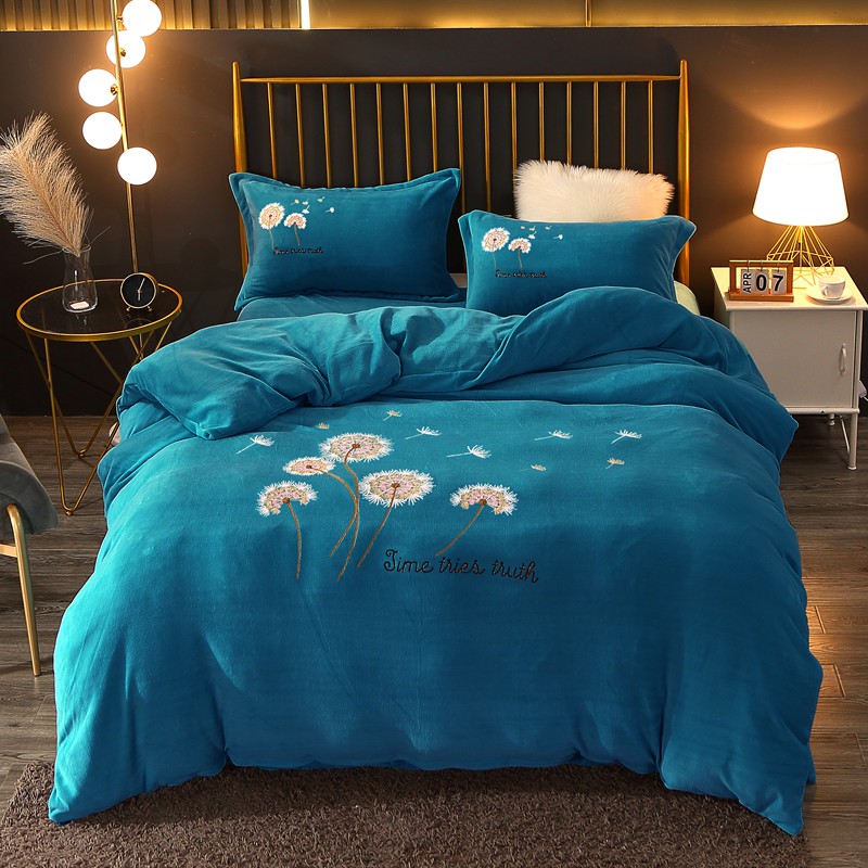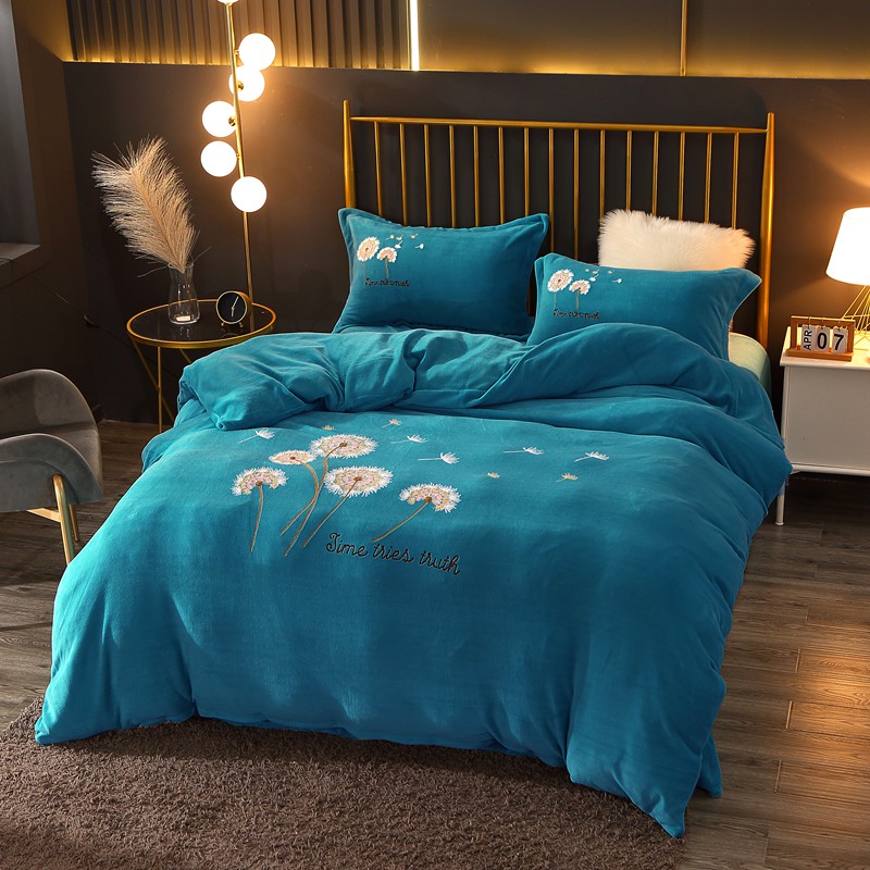 美梦雏菊-湖蓝:雏菊全棉13372毛巾绣四件套
