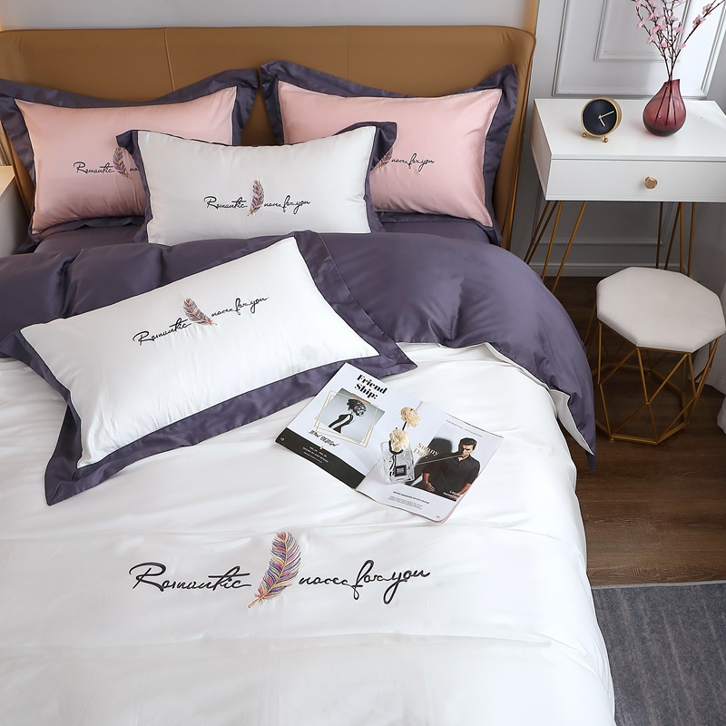 羽沐·全棉双股100支贡缎长绒棉绣花四件套: