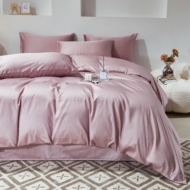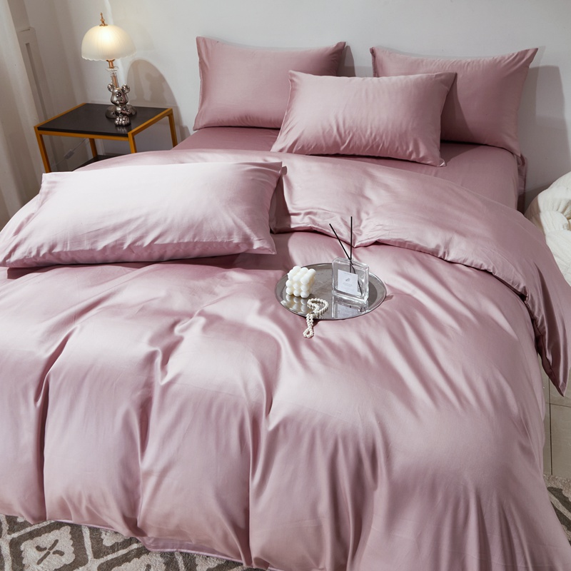 琅夕-粉豆沙:全棉60支贡缎长绒棉纯色套件和单品